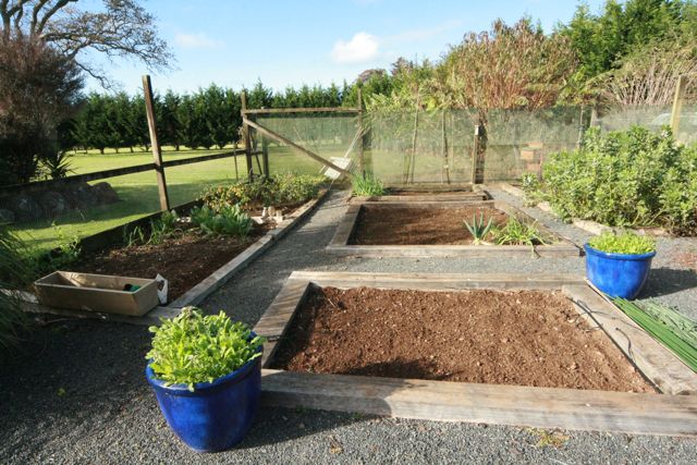 When we moved in it was a forest of weeds that was way over my head! During our time here we've put new fencing round it - need to keep the pesky rabbits out, and added macrocarpa sleepers to make sort of raised beds. Last year we put in an irrigation system as we've had a few droughts.