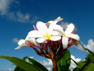 The bed that runs along the front of the house is filled with white camillias, gardenias and hibiscus there are also various other flower beds around the place with my roses, more hibiscus, dwarf frangipanis, a 'real' frangipani and lots of bits and bobs...