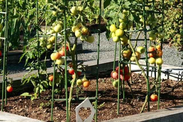 It's pretty prolific. With our sub-tropical climate things grow rather well. After few years I've worked out what grows best for us and what we like ~ it's tomatoes, chillis, courgettes, aubergines, beans of all sorts, peas, squashes, loofahs, sweetcorn, lots of herbs, onions, spring onions, garlic, a large potato bed, artichokes, asparagus, etc! Oh and we've also got an awful lot of passion fruit vines and various orchards - lots of citrus, apples, peaches, plums, grapes and figs. And a banana grove!